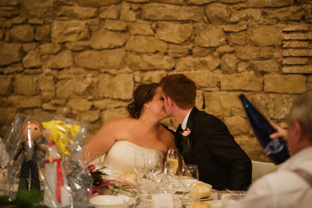 Tras ello, pasan a celebrar el banquete a Logroño. El lugar elegido fue Bodegas Franco Españolas. Un lugar emblemático de producción de vino histórica. Un lugar muy amplio, con un recinto histórico para el envejecimiento del vino, jardines muy cuidados e, incluso, un museo que tuvimos la oportunidad de usar para algunas fotografías de boda.